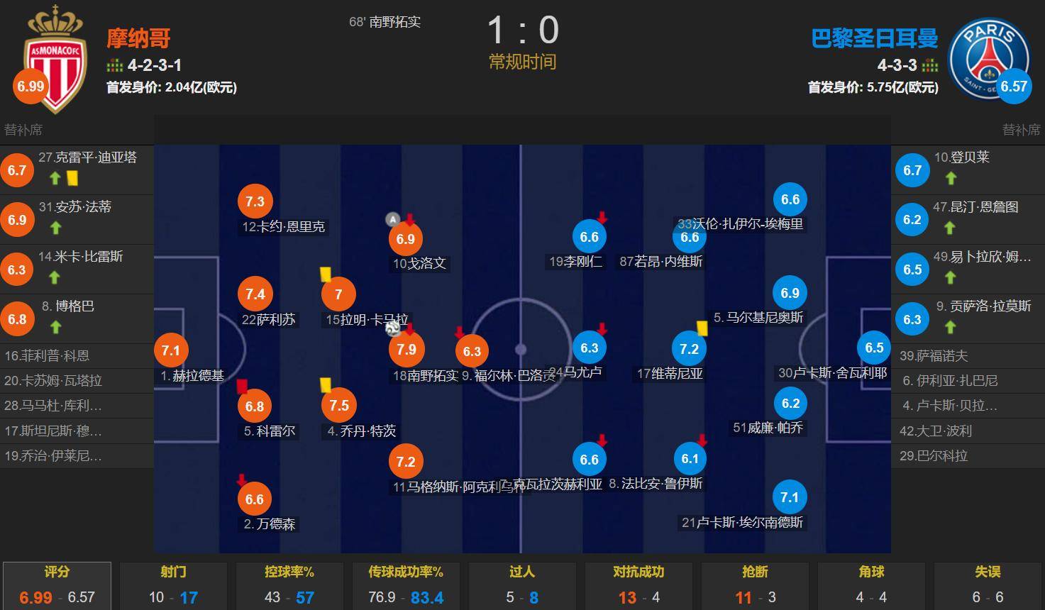 赛后,南野拓实获得了7.9分的评分,也是全场最高分。这位现年30岁的日本前锋,从利物浦离开加盟摩纳哥之后,球员重拾信心,状态也是稳定输出,本赛季已经贡献4球3助,目前德转身价1500万欧元。